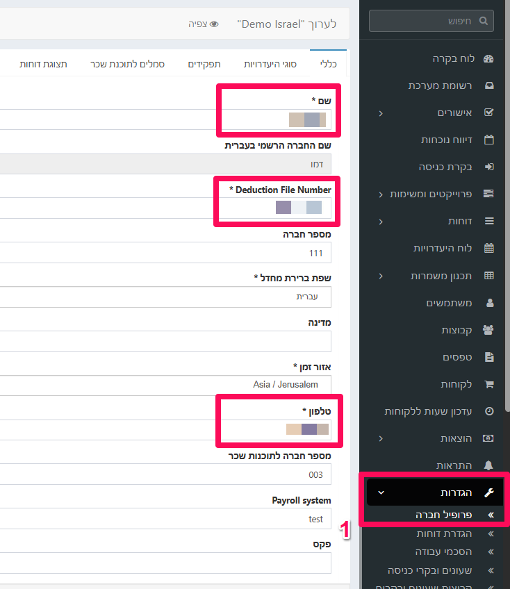 יש לגשת להגדרות -> פרופיל חברה -> נמלא את השדות: