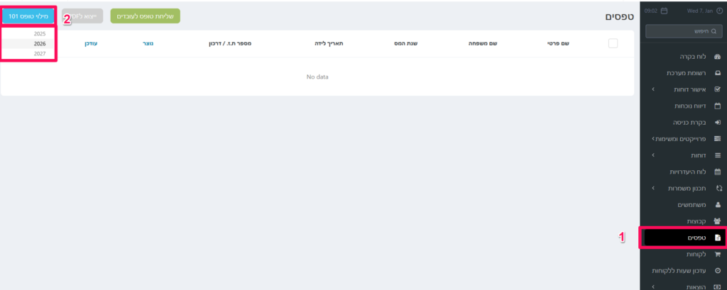 2. מילוי טופס 101.