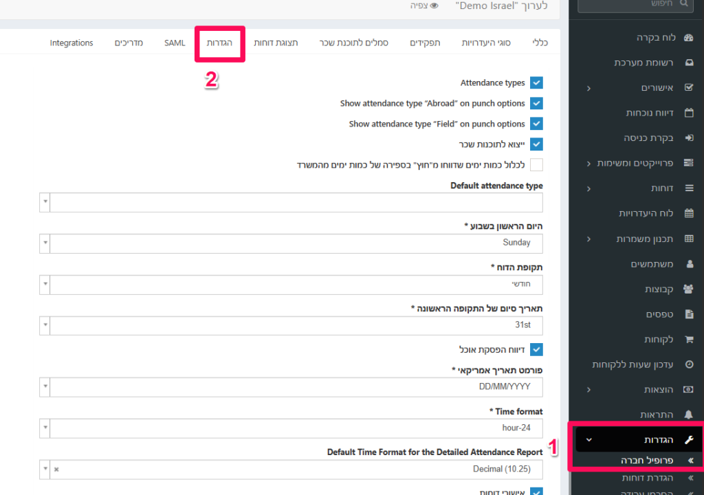 נלחץ על "הגדרות" -> נלחץ על "פרופיל חברה" -> נבחר למעלה ב"הגדרות".