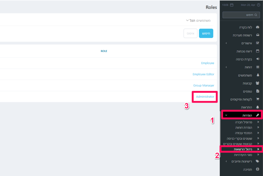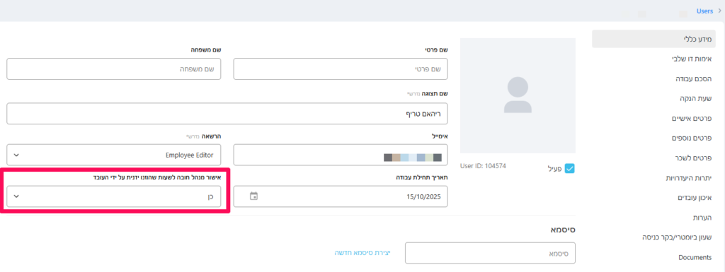 שלב 1: פתיחת הרשאה של מי שיכול לאשר דיווחים ידניים: