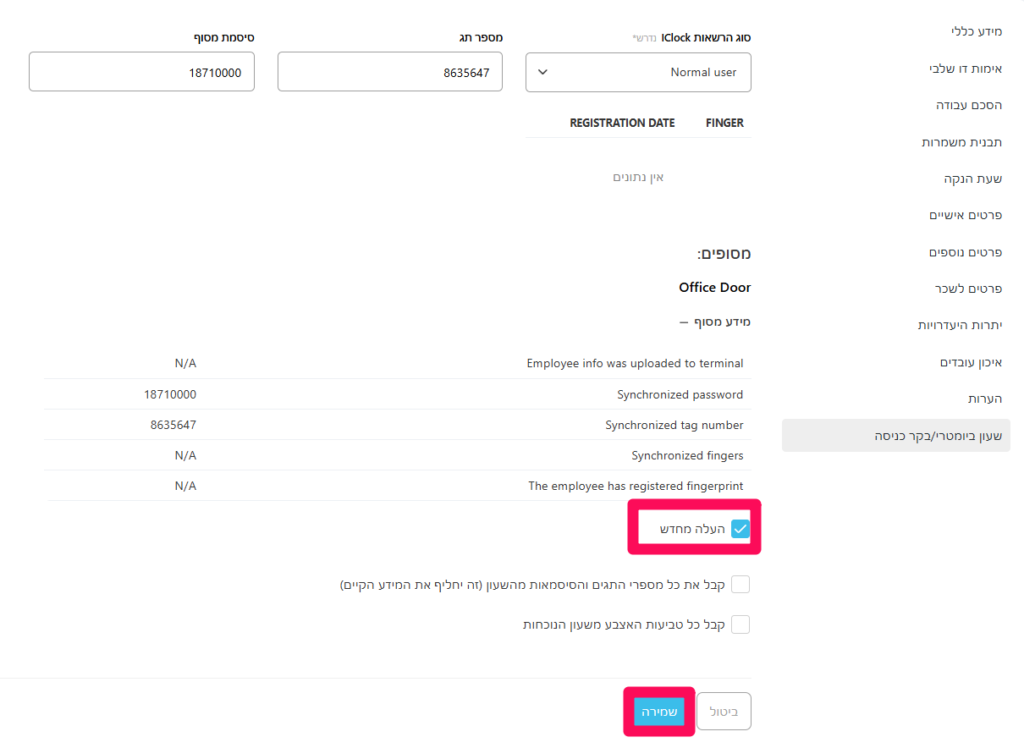 נסמן את "העלה מחדש" -> נלחץ על שמירה.