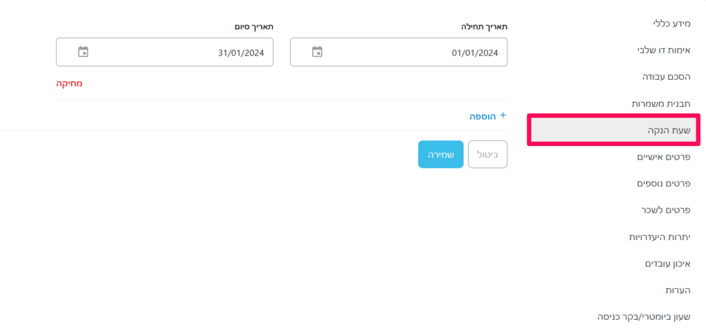 במדריך הבא נלמד איך להגדיר לעובדת שעתית תוספת של שעת הנקה בטווח תאריכים.